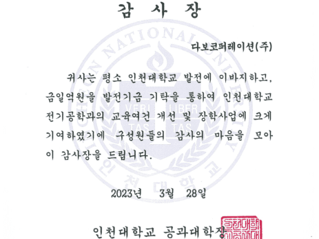 안녕하세요. 다보코퍼레이션(주) 입니다. 2023년도 전력전자 학술대회가 아래의 일정으로 진행됩니다. 일정: 2023년 07월 04일(화) ~ 07월 06일(목) 장소: 웰리힐리파크 본관2층 (강원도 횡성) 저희 다보코퍼레이션(주)에서는 학술대회 일정에 맞춰 전시부스 참가 예정입니다. 5번 부스에서 Infineon과 Power Integrations 그리고 Cyntec의 제품 전시 및 상담을 진행할 예정이오니  시간 내주시어 방문하여 주시면 성심성의껏 답변 드릴 수 있도록 하겠습니다. 감사합니다.